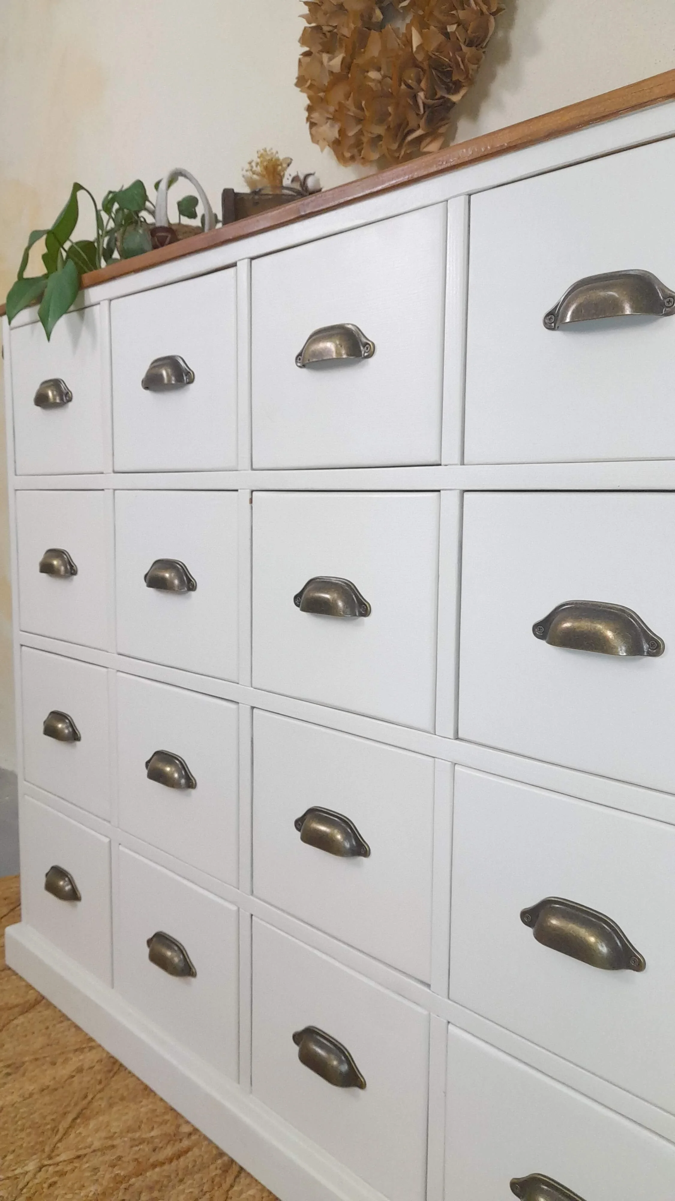 Dieser Apothekerschrank kam mit sichtbaren Spuren eines langen Lebens zu mir.