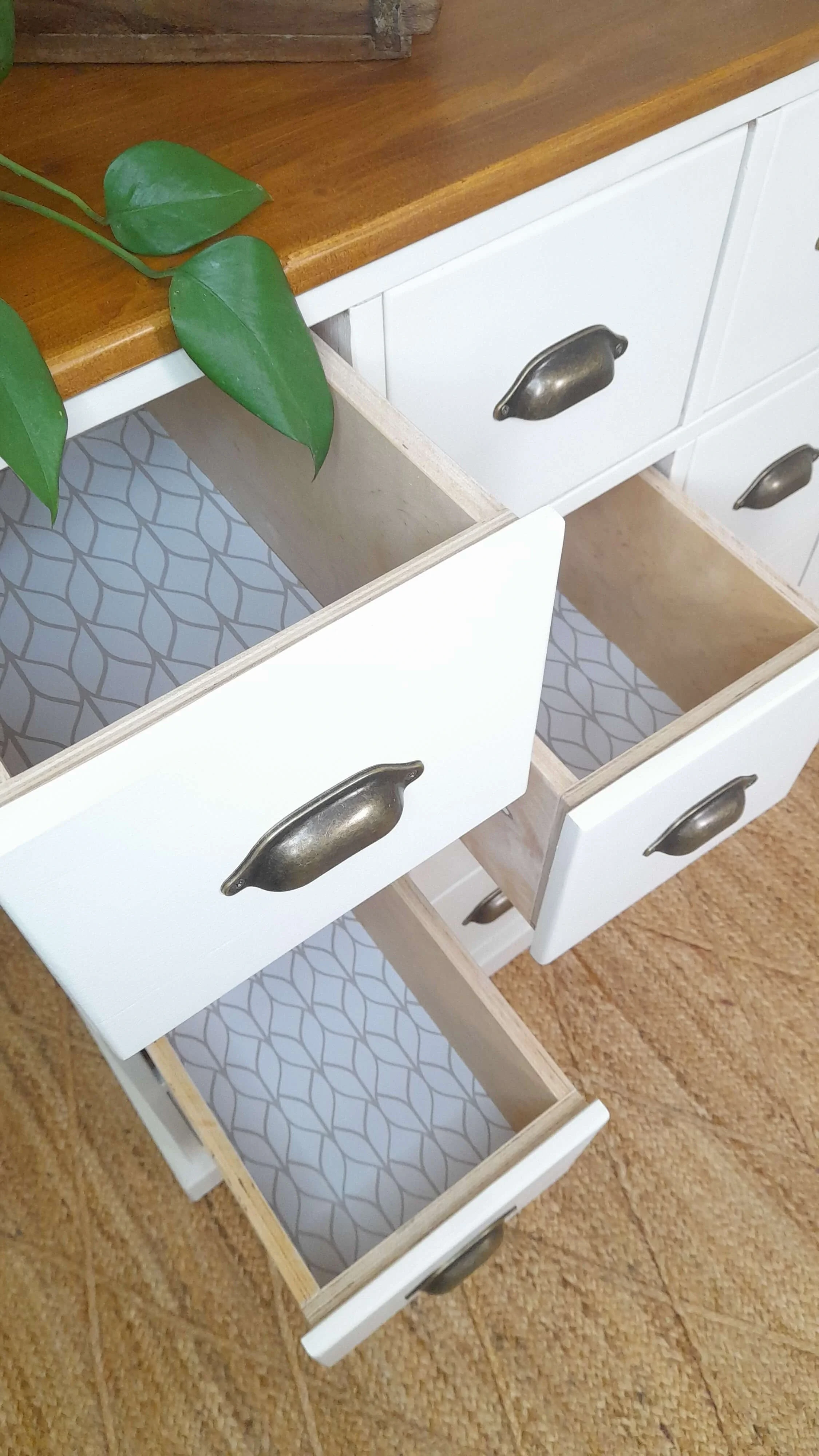 Die Schubladen leicht abgenutzt, die Oberfläche zerkratzt, die Griffe fehlten. Und doch – sein Charme war da. Nur etwas stiller als früher.